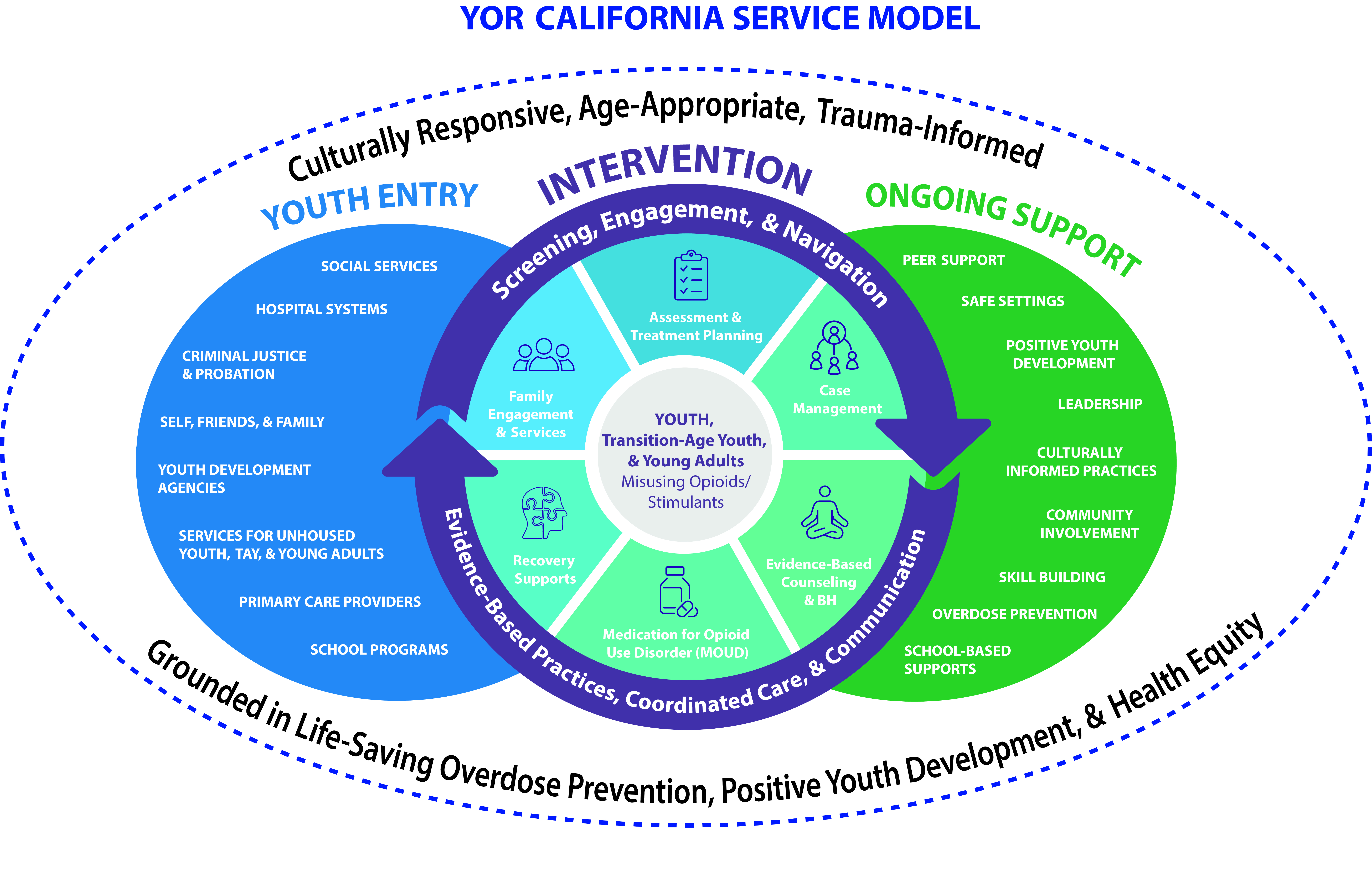 YOR California aims to enhance the capacity and accessibility of prevention, treatment, and recovery services, along with increasing access to Medication for Opioid Use Disorder (MOUD) when clinically necessary. This initiative is designed to promote the creation, coordination, and strengthening of local multi-system networks, while also encouraging the development of new partnerships among agencies involved with youth, young adults, and their families at risk of opioid overdose.
